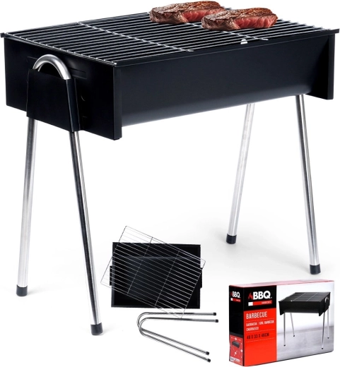Geniet overal van barbecueën met deze compacte draagbare houtskoolbarbecue. Hij biedt een stabiele constructie op vier poten, een verwijderbaar verchroomd rooster voor eenvoudig schoonmaken en een duurzame stalen behuizing met poedercoating. Ideaal voor kamperen, picknicks en de tuin.