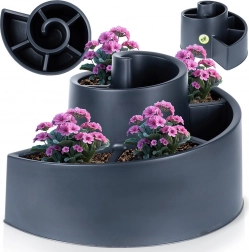 De spiraalvormige plantenbak met meerlagige indeling zorgt voor indrukwekkende composities en bespaart tegelijk ruimte. Zes afzonderlijke vakken maken het gemakkelijk om verschillende plantensoorten gescheiden te houden – van bloeiende eenjarigen tot kruiden.