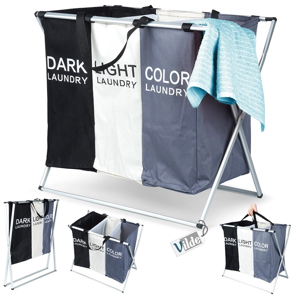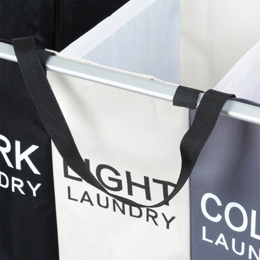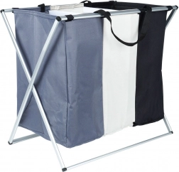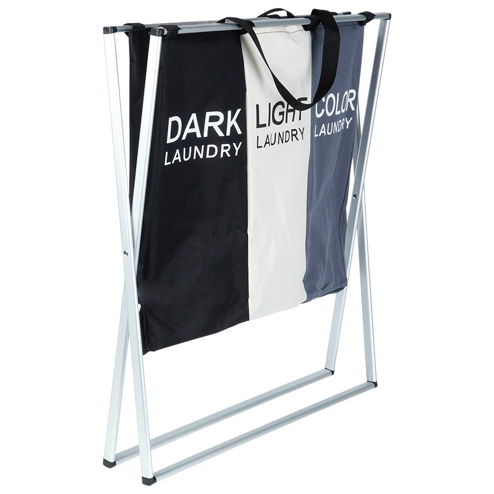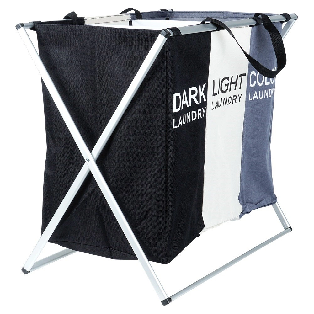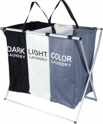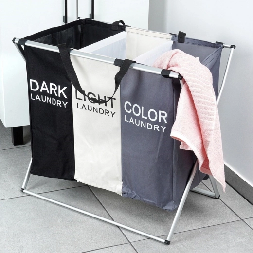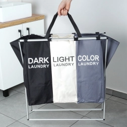 Houd overzicht in je was met de duidelijke wasmand met drie compartimenten, waarmee je direct kunt sorteren in donker, licht en kleur. Het lichte maar stabiele metalen frame in zilverkleur en de stevige textielen zakken zorgen voor een lange levensduur en dagelijks gebruiksgemak.