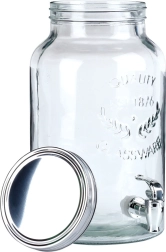 Stijlvolle glazen drankdispenser met een inhoud van 6,2 l, voorzien van een praktisch kraantje en een schroefbaar metalen deksel. Ideaal voor limonades, punch, fruitwaters en ijsthee. De brede opening maakt vullen en reinigen eenvoudig, het reliëfglas oogt elegant en de materialen zijn veilig voor contact met voedsel.