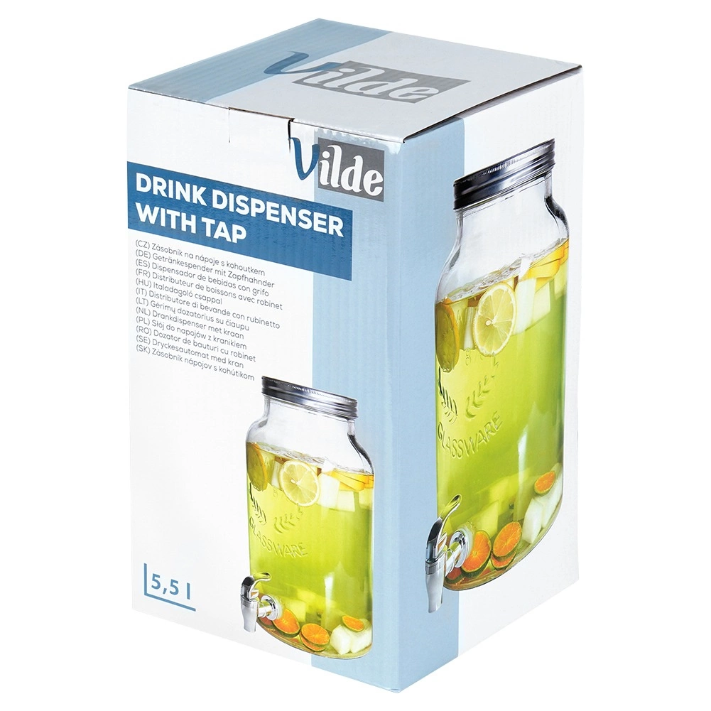 De ruime glazen dispenser met kraantje is de perfecte keuze voor het serveren van verfrissende drankjes op tuinfeesten, familiefeestjes en in de horeca. Dankzij de inhoud van 6,2 l maak je moeiteloos fruitwater, huisgemaakte limonade of ijsthee en serveer je deze stijlvol direct vanaf tafel.