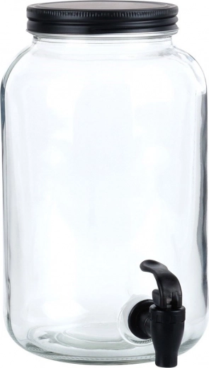 Stijlvolle glazen drankdispenser met een inhoud van 3,2 l, voorzien van een praktisch kraantje en een schroefdeksel in het zwart. Ideaal voor limonades, fruitwater, ijsthee of punch. Dankzij de brede opening is hij gemakkelijk te vullen en te reinigen, en het glazen lichaam is voedselveilig.