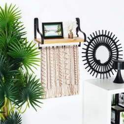 Dankzij de afmetingen 43 × 18 × 26 cm past de plank ook in kleinere ruimtes en helpt hij orde te houden waar nodig – in de keuken voor kruiden en keukengerei, in de badkamer voor cosmetica en handdoeken, in de hal voor sleutels en accessoires of in de woonkamer voor decoraties en foto’s. Installatie is eenvoudig, montagemateriaal inbegrepen.