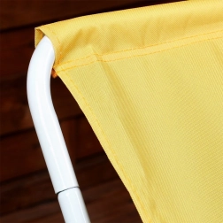 De duurzame polyesterstof in gele tinten voelt prettig aan en biedt comfortabel ontspannen op het strand en in de tuin.