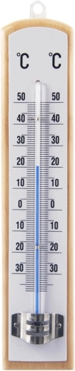 De thermometer is gemaakt van natuurlijk hout en voorzien van een ophangopening, zodat u hem eenvoudig aan de muur kunt plaatsen. De witte contrasterende schaal en de duidelijke vloeistofkolom zorgen voor uitstekende leesbaarheid, ook vanaf grotere afstand.