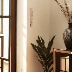 Het elegante, tijdloze design past moeiteloos in elke omgeving. Het praktische oogje zorgt voor eenvoudig ophangen aan de muur, zodat u de temperatuur altijd in het zicht heeft. De glazen capillair met rode vloeistof zorgt voor een duidelijke en betrouwbare aflezing.