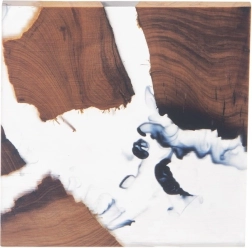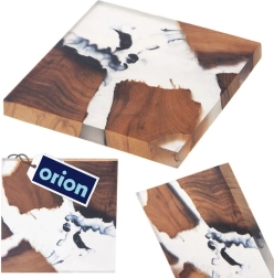 Het vierkante onderzettertje van acaciahout met een inleg van witte hars in opvallende “river”-stijl is een praktische én decoratieve toevoeging voor keuken en woonkamer. Dankzij het gladde oppervlak en de stevige dikte beschermt het tafelbladen betrouwbaar tegen de hitte van warme dranken en het vocht van gekoelde glazen.