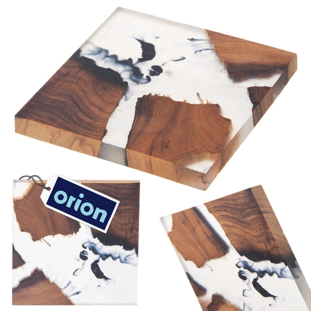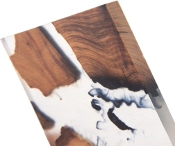 De unieke combinatie van acaciahout en witte hars creëert het effect van een rivierstroom – elk stuk is uniek en siert je tafel.