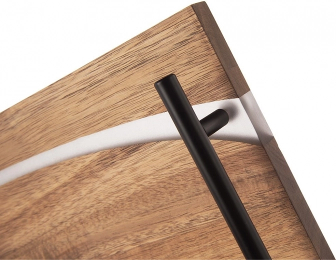 - Materiaal: acaciahout met hars-inlay, metalen handgrepen