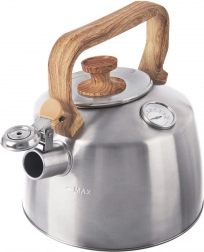 Deze klassieke roestvrijstalen ketel met tijdloze uitstraling is ontworpen voor snel water koken en nauwkeurige temperatuurcontrole. De ingebouwde analoge thermometer helpt je de ideale temperatuur in te stellen voor verschillende soorten thee of kruiden, terwijl de fluit veilig waarschuwt wanneer het kookpunt is bereikt. De ergonomische handgreep met houtlook voelt prettig aan en zorgt voor comfortabele bediening.
