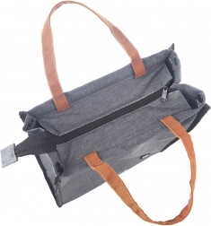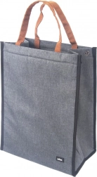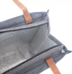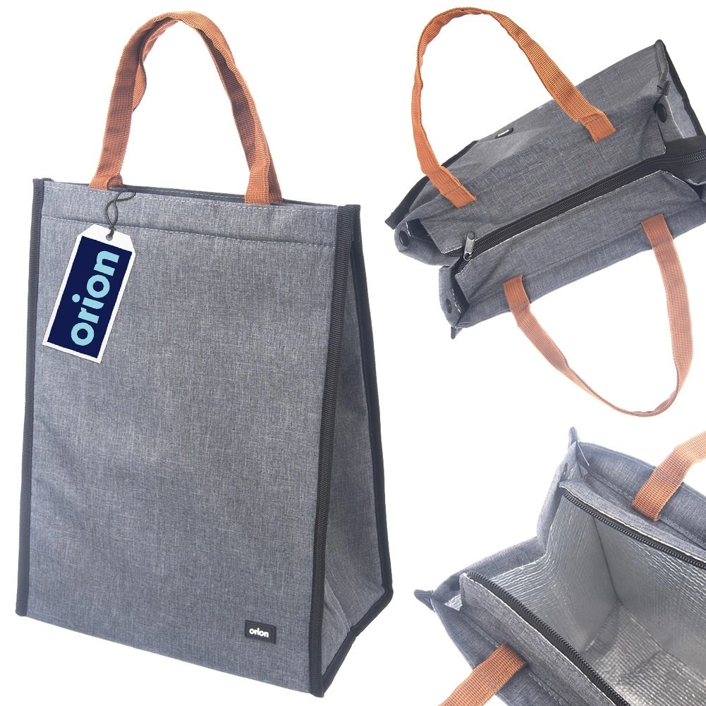 Deze stijlvolle thermotas met een inhoud van 14 liter houdt koude en warme gerechten betrouwbaar op temperatuur dankzij hoogwaardige thermische isolatie. De robuuste grijze polyester is slijtvast, de bruine handgrepen liggen prettig in de hand en de rits over de volledige lengte maakt toegang tot de inhoud makkelijk. Het praktische achterste ritsvak biedt ruimte voor kleinigheden, sleutels of tissues.