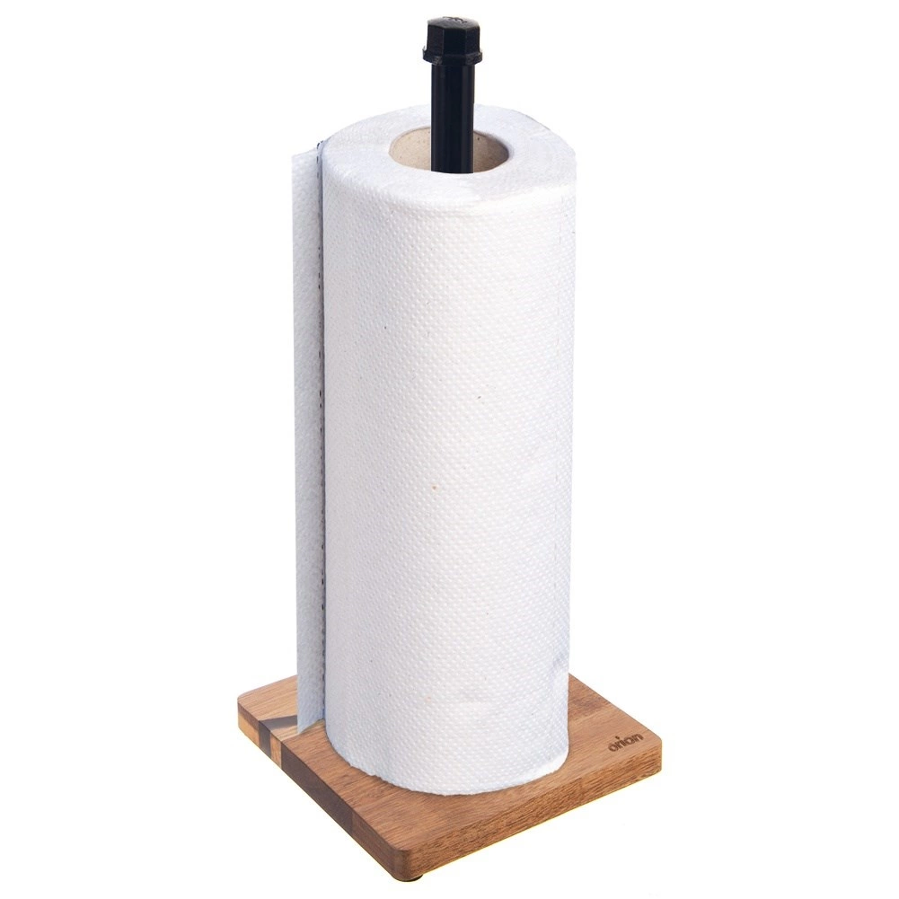 De praktische keukenrolhouder uit de River-collectie kenmerkt zich door een natuurlijke basis van acaciahout met decoratieve hars die doet denken aan de stroom van een rivier, en een robuuste verticale staaf van zwart gelakt metaal. Het minimalistische uiterlijk komt tot zijn recht in loftinterieurs én in een klassieke omgeving.