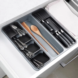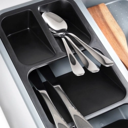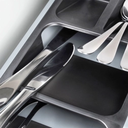 Twee uitneembare modules maken het mogelijk bestek en messen perfect te scheiden. Je haalt ze eenvoudig eruit, reinigt ze en past ze aan je actuele behoeften aan.