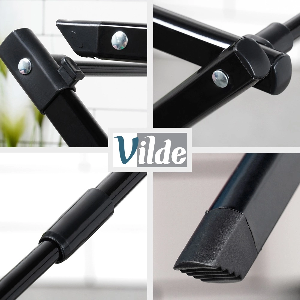 Praktisch verticaal droogrek voor wasgoed in elegante zwarte kleur, ideaal voor maximaal ruimtegebruik in de badkamer, op het balkon of het terras. Dankzij de telescopische lengte-instelling van 47–78 cm pas je het droogoppervlak eenvoudig aan je actuele behoeften aan – van kleine tot grotere wasbeurten. De metalen constructie met poedercoating zorgt voor stevigheid, duurzaamheid en een lange levensduur.