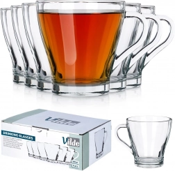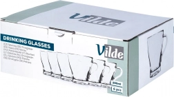 De set van zes universele glazen met oor van het merk VILDE is ideaal voor thee, koffie, water, sap en mixdranken. De heldere wanden laten de kleur van de drank uitkomen en het dikke glas zorgt voor duurzaamheid en stabiliteit. Dankzij het comfortabele oor liggen de glazen veilig in de hand, ook bij het serveren van warme dranken.