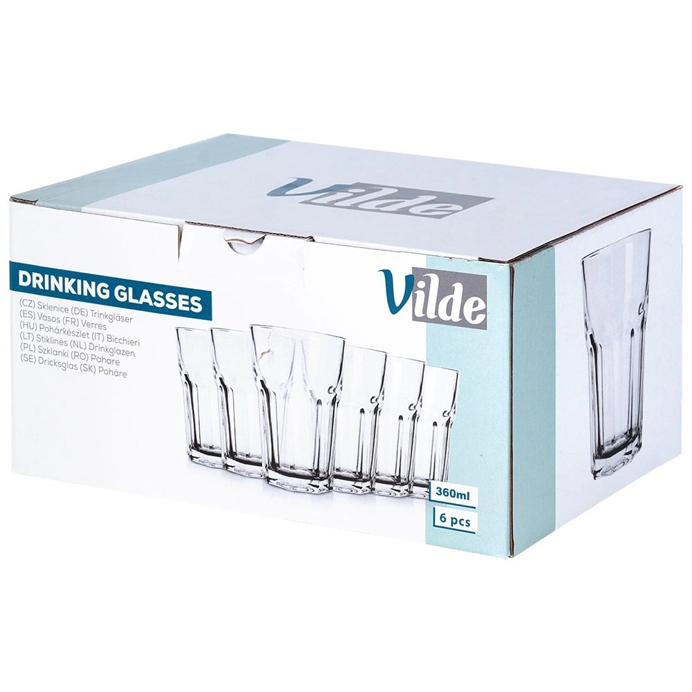 Ideaal voor water, limonades, sappen en drankjes. De set van zes stuks dekt de dagelijkse behoeften van een huishouden of kleine zaak.