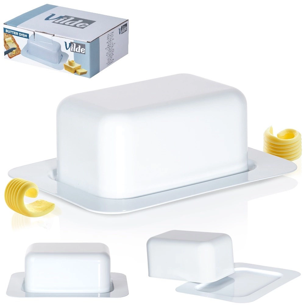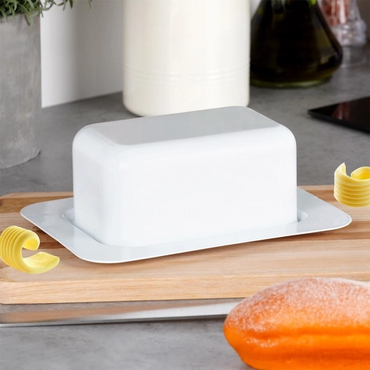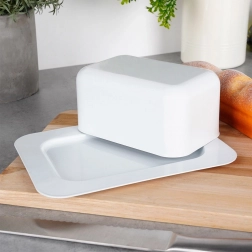 De stijlvolle stalen botervloot in witte kleur is ideaal voor het bewaren en serveren van boter, zowel thuis als tijdens etentjes met gasten. Het poedergecoate oppervlak oogt elegant en verhoogt tevens de krasbestendigheid.