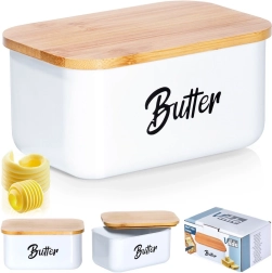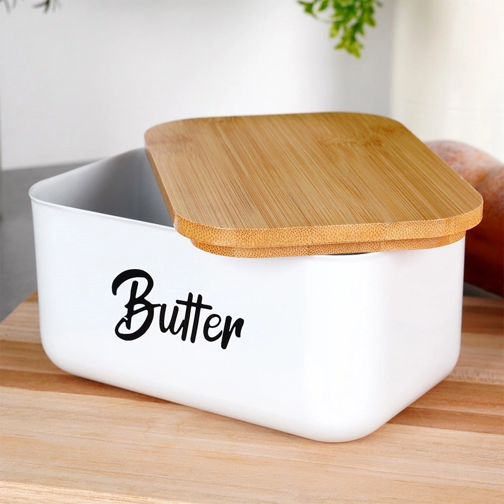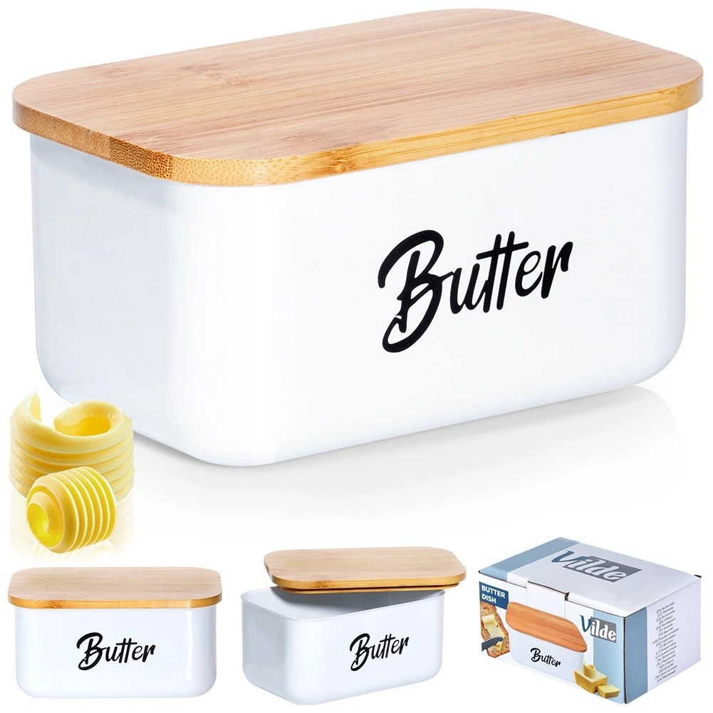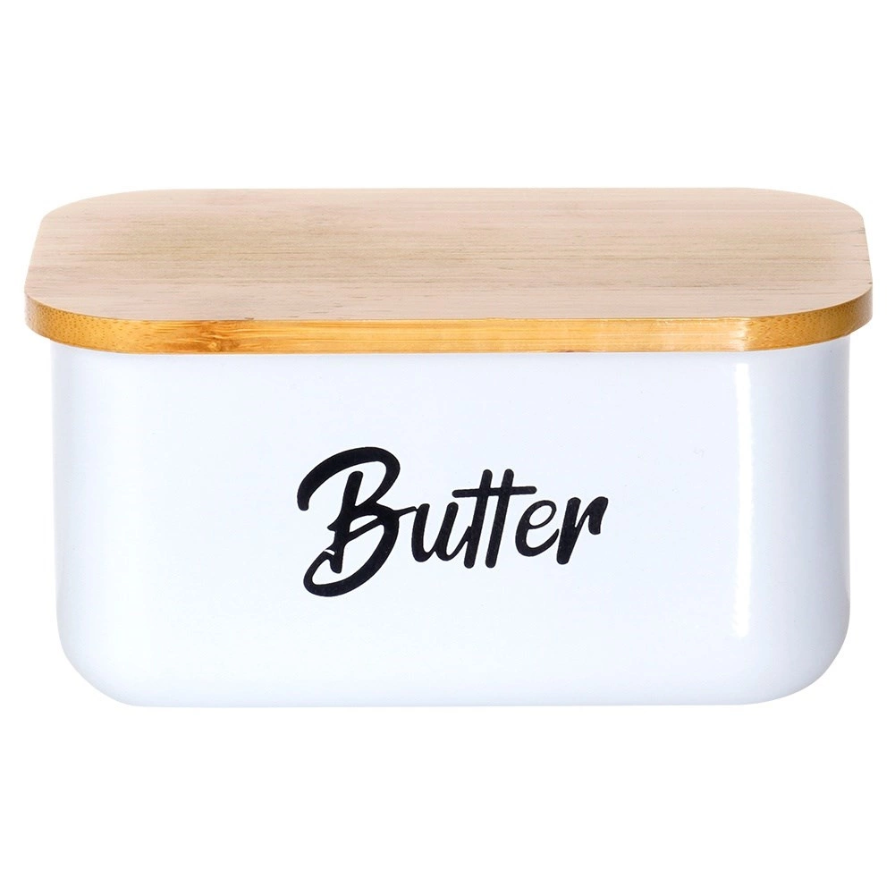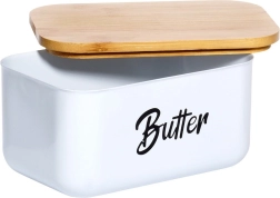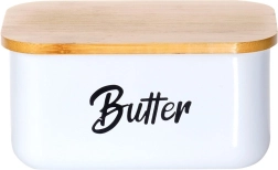 Wit poedergecoat staal en een natuurlijk bamboe deksel geven uw keuken een moderne, strakke uitstraling en bieden tegelijk praktische bescherming voor de boter.