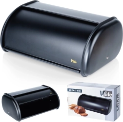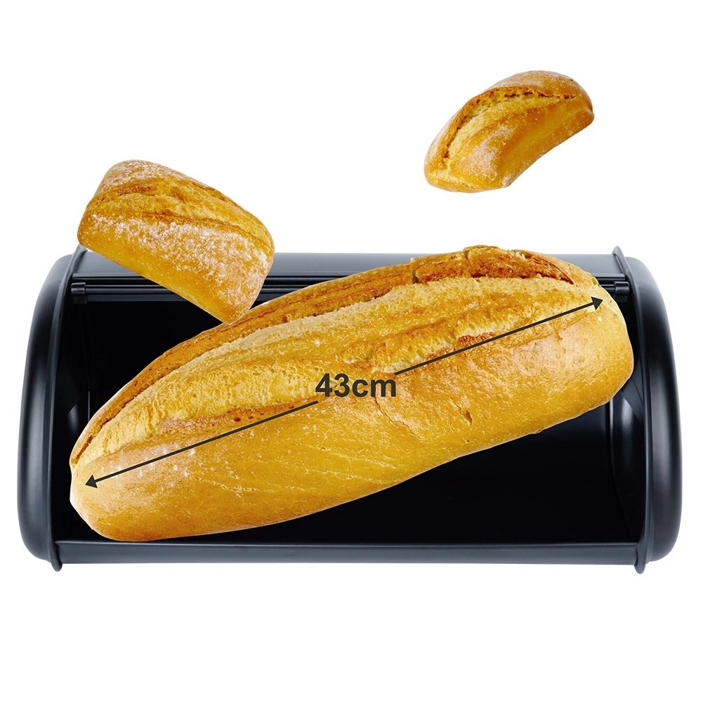 Elegante zwarte broodtrommel van roestvrij staal houdt je brood en banket langer vers. Dankzij het rolluikdeksel is de toegang snel en comfortabel, de poedergecoate metalen afwerking zorgt voor duurzaamheid en het ruime ontwerp biedt plek voor brood, broodjes en gebak in verschillende formaten. Een stijlvol accessoire dat perfect past in elke keuken.