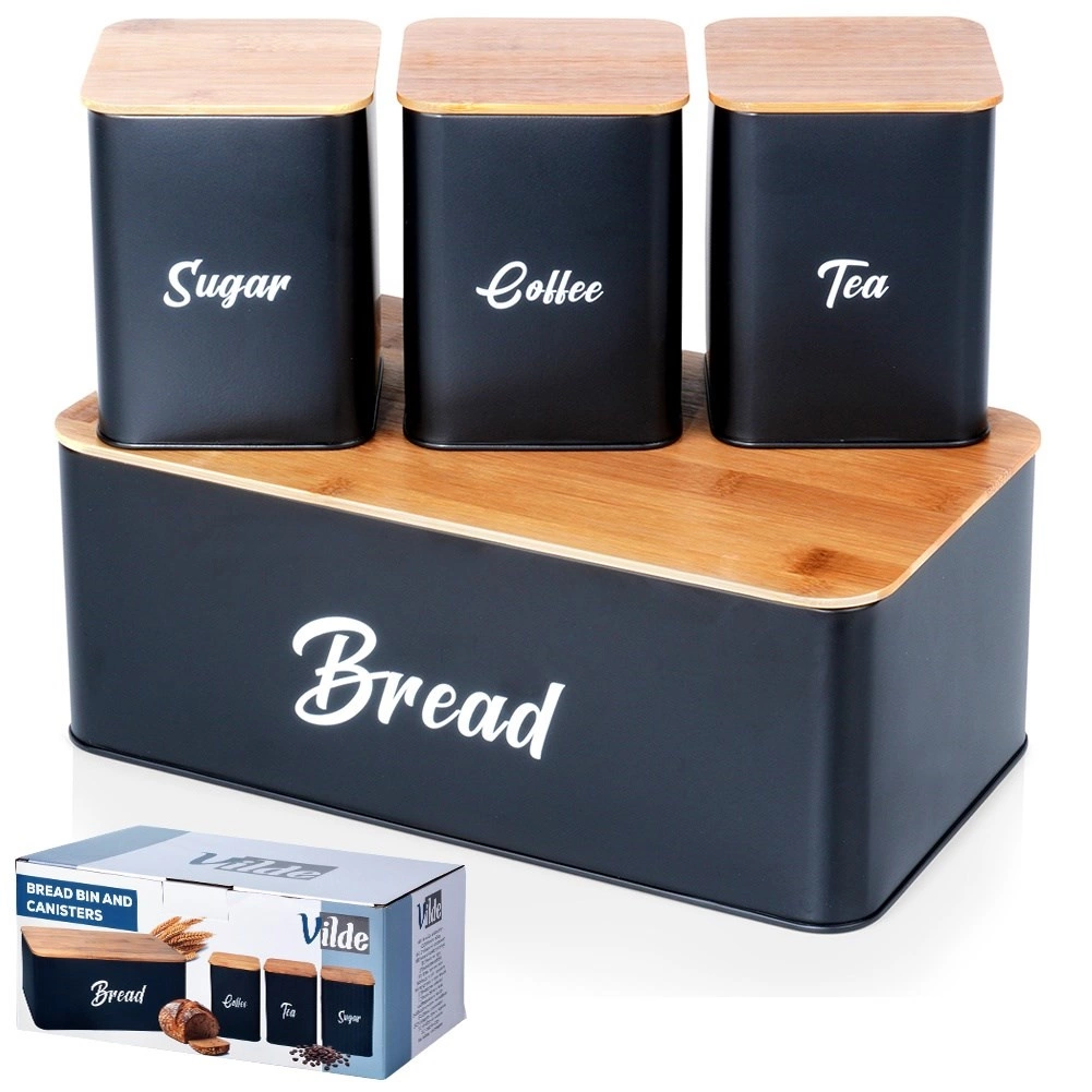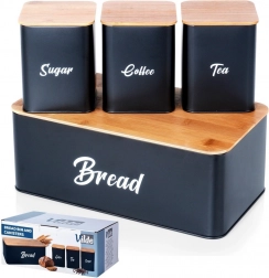 De set is ideaal voor dagelijks gebruik – in de broodtrommel bergt u eenvoudig brood, pistoletjes, bolletjes en zoet gebak op. De potten hebben compacte afmetingen, waardoor ze geen onnodige ruimte innemen op het werkblad en tegelijk een stijlvolle, uniforme look in de keuken creëren.