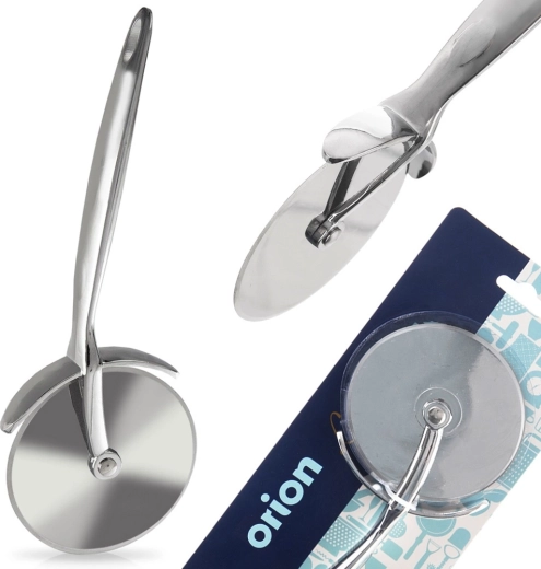 De volledig metalen body in verchroomde uitvoering is duurzaam, hygiënisch en vaatwasmachinebestendig. Het praktische ophangoog zorgt ervoor dat je de snijder altijd binnen handbereik hebt. Origineel product van het merk ORION, vervaardigd volgens Europese normen.
