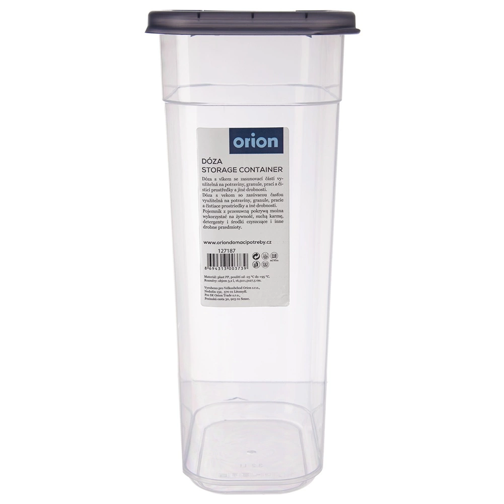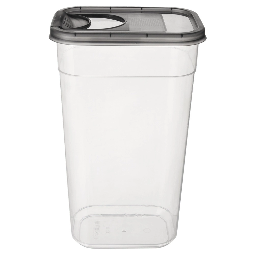 Praktische doos met een inhoud van 3,2 l en geïntegreerde doseertuit zorgt voor luchtdichte opslag en gemakkelijk schenken van droge levensmiddelen. Transparante behuizing voor snelle inhoudscontrole, hoogwaardige kunststof zonder BPA, geschikt voor koelkast, vriezer, magnetron (zonder deksel) en vaatwasser. Ideaal voor pasta, havermout, koffie, noten of dierenvoer.