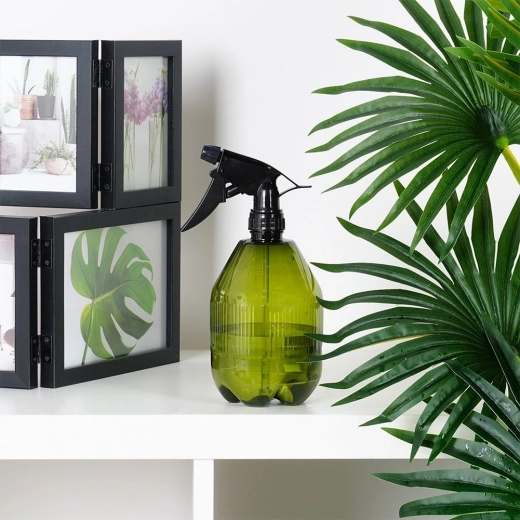 De universele Vilde-sproeier met een inhoud van 730 ml is een betrouwbare hulp voor huis en tuin. De donkergroene, halftransparante fles beperkt lichtinval, wat helpt om de eigenschappen van opgeslagen vloeistoffen te beschermen. De verstelbare sproeikop laat je schakelen tussen fijne nevel en geconcentreerde straal, inclusief volledige afsluiting voor veilig transport.