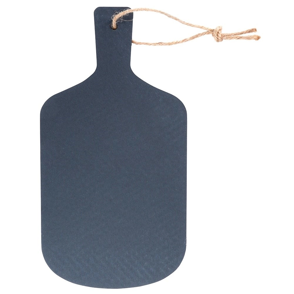 Deze serveerplank van natuurlijke leisteen met afmetingen 28,5 × 15 cm geeft je tafel een uitgesproken, modern accent. Dankzij de gewerkte randen en het natuurlijk gestructureerde oppervlak is hij perfect voor het serveren van kazen, vleeswaren, tapas, desserts of petitfours. Het geïntegreerde handvat met lus vergemakkelijkt het hanteren en laat de plank stijlvol ophangen.