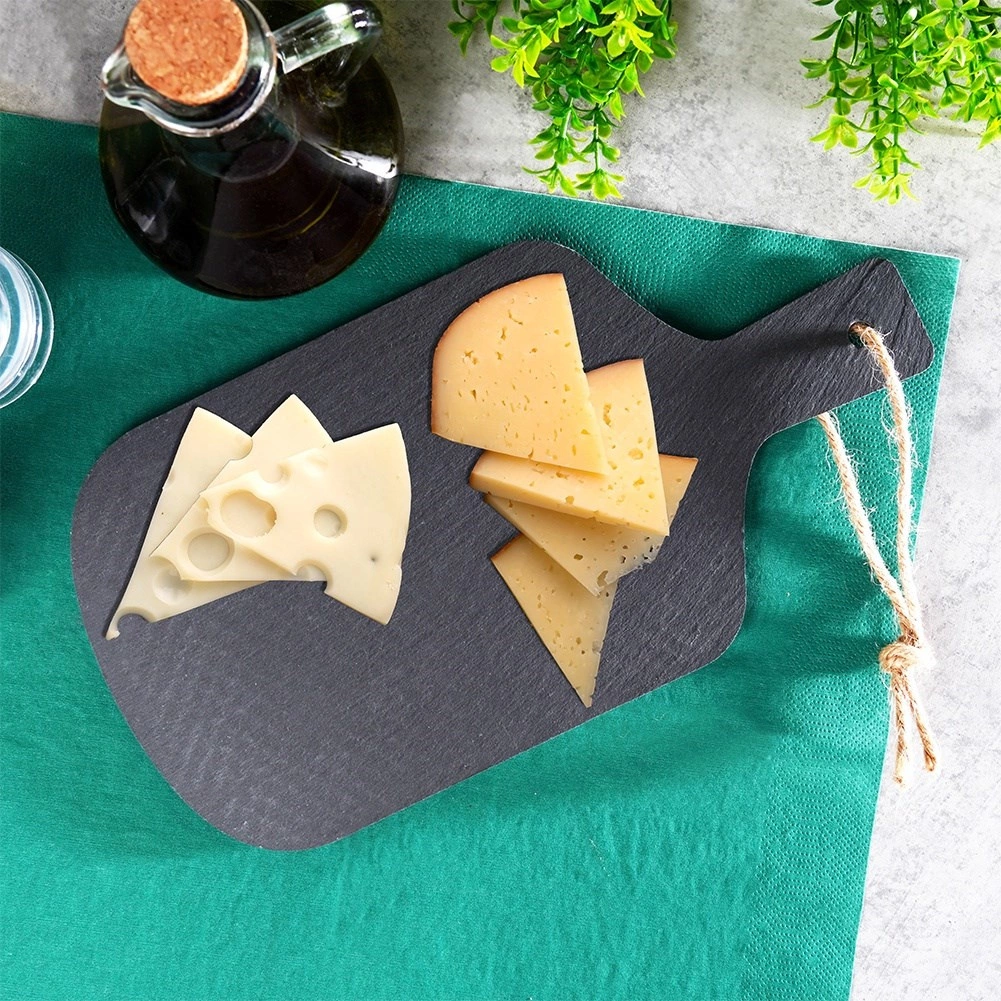 Leisteen slaat warmte en kou van nature op; je kunt de plank vóór het serveren voorverwarmen of koelen om de temperatuur van gerechten beter te behouden. Onderstaande antislipdopjes zorgen voor stabiliteit op het werkblad én op het tafelkleed. Reinigen gaat eenvoudig met een vochtige doek; afwassen in de vaatwasser wordt afgeraden.
