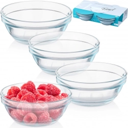 Universele glazen schaaltjes met een diameter van 10,5 cm en een hoogte van 4,5 cm, perfect voor het serveren van koude én warme gerechten. Het kristalheldere glas accentueert de kleuren van de ingrediënten en geeft de tafel een frisse, tijdloze uitstraling. De set van 4 stuks is ideaal voor familiediners, feestjes en voor de dagelijkse voorbereiding van ingrediënten in de keuken.