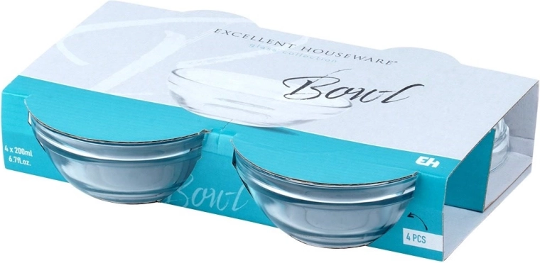 Een elegante set van vier glazen schaaltjes van 200 ml, ideaal voor dagelijks serveren en feestelijke diners. Dankzij het transparante glas komt de inhoud prachtig tot zijn recht. Gebruik ze voor desserts, voorgerechten, sauzen en dips, salades en kleine porties fruit. Ze hebben een klassiek design, zijn onderhoudsvriendelijk en geschikt voor de vaatwasser.