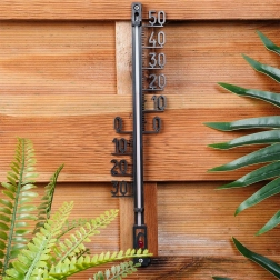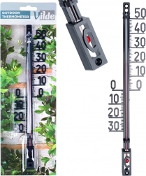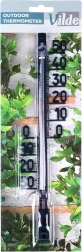 De praktische en stijlvolle VILDE-thermometer meet nauwkeurig de luchttemperatuur binnen en buiten. Dankzij de grote cijfers en het contrasterende schaalverloop is hij ook op grotere afstand goed afleesbaar. Het elegante zwarte design past perfect aan de gevel, het hek, op het balkon of in de hal.