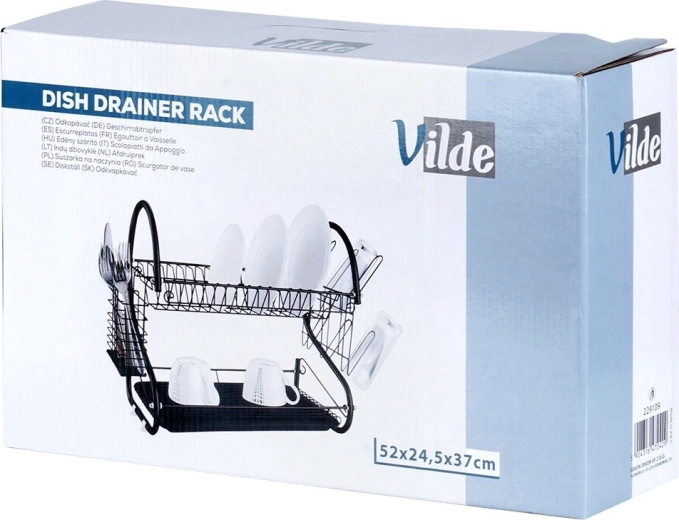 Het afdruiprek kan vrij op het werkblad worden gebruikt of aan de muur worden gehangen (montagematerialen niet inbegrepen). Origineel product van het merk VILDE, geproduceerd volgens Europese normen.