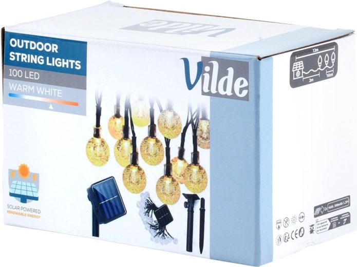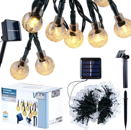 Creëer een betoverende sfeer op terras, balkon en in de tuin met deze zonne-energie lichtslinger van 10 m met 100 warme LED’s. Dankzij zonnestroom brandt hij na volledig opladen tot 6–8 uur, biedt 8 lichtstanden en heeft IP44 bescherming voor buitengebruik. Eenvoudige installatie, zuinig in gebruik en prettig warm licht van 2700 K voor een knusse avondstemming.