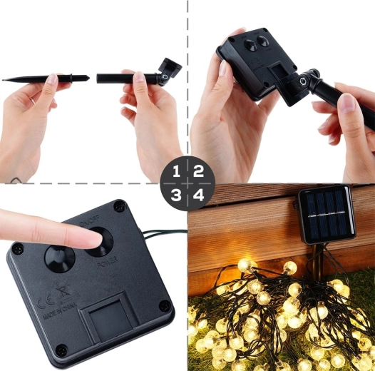 De totale lengte is 12 m (lichtdeel 10 m + 2 m aansluitsnoer), zodat je de slinger gemakkelijk rond een pergola, balustrade, prieel of bomen kunt plaatsen. Je kunt kiezen uit 8 lichteffecten – van constant licht tot verschillende pulsen en golven – voor romantische diners, tuinbijeenkomsten en feestelijke gelegenheden.