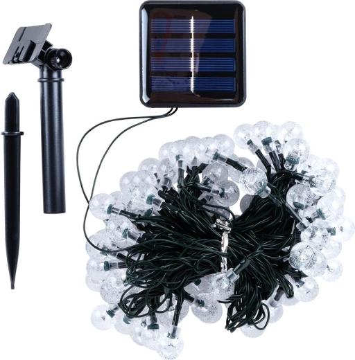 De zonnelichtslinger met 100 LED-lampjes met een diameter van ca. 1,5 cm verlicht elke buitenruimte met prettig warm licht. Dankzij het efficiënte zonnepaneel en de geïntegreerde accu (1× AAA 1,2 V) laadt hij overdag op en zorgt hij na het donker automatisch voor langdurige en zuinige verlichting. De IP44-bescherming garandeert betrouwbaarheid bij wisselende weersomstandigheden.