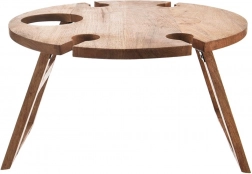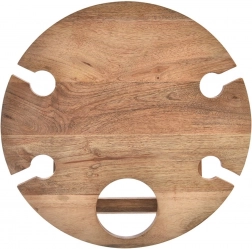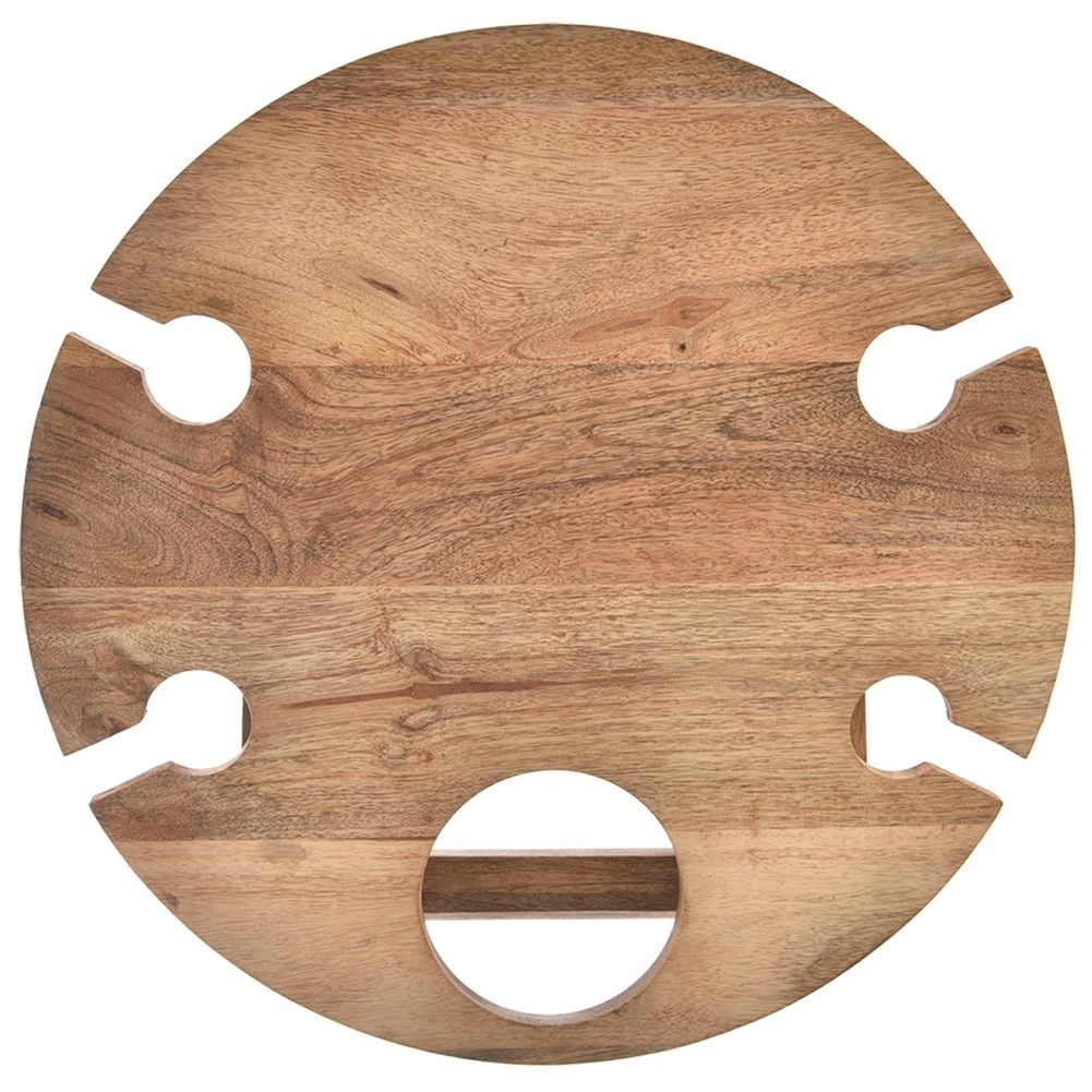 Deze praktische lage tafel is gemaakt voor comfortabel tafelen in de natuur en thuis. Het blad met precieze uitsparingen houdt een fles en 4 glazen stevig vast, zodat dranken stabiel blijven, zelfs op een minder vlakke ondergrond. Natuurlijk mangohout biedt een uitzonderlijke nerf en uitstekende vochtbestendigheid.