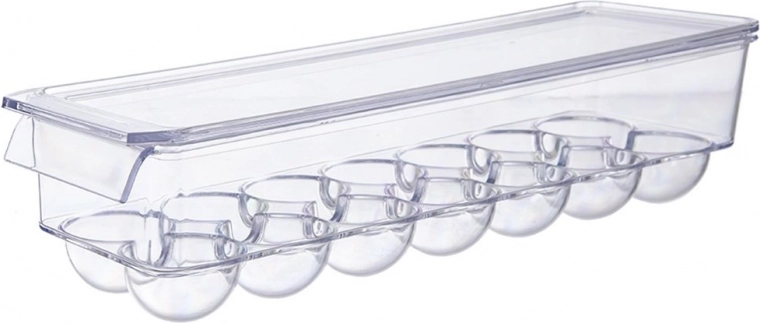 De praktische eierdoos met afmetingen 36 × 10,5 × 8,5 cm is gemaakt van hoogwaardige, transparante kunststof. De gevormde kuipjes houden de eieren stabiel, voorkomen dat ze rollen en beschermen tegen stoten en het opnemen van koelkastgeuren. Het deksel maakt veilig stapelen van meerdere dozen mogelijk en benut de ruimte optimaal.