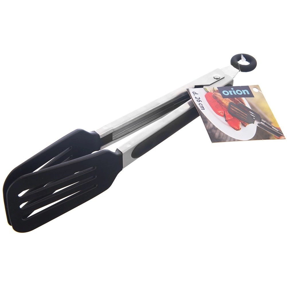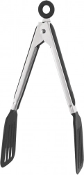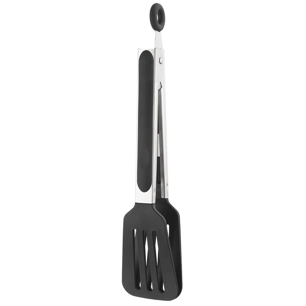 Praktische tang voor dagelijks gebruik in de keuken en aan de grill. Dankzij het robuuste rvs-lichaam en de hittebestendige PBT-eindstukken draait u veilig en gemakkelijk vlees in de pan om, haalt u gekookte groenten uit het water, mengt u salades of serveert u gerechten. De eindstukken zijn vriendelijk voor teflon-, keramische, granieten en andere antiaanbakoppervlakken.