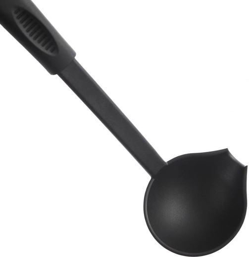 De pollepel uit de BLACKLINE-serie is een geweldige hulp voor dagelijks koken en serveren. De lichte constructie van hoogwaardige thermoplast is zacht voor kookgerei, krast antiaanbaklagen niet en biedt dankzij de ergonomische handgreep een zekere grip.