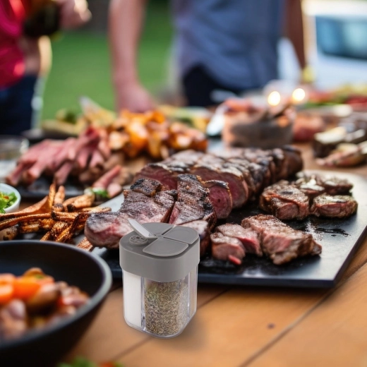 Het deksel biedt meerdere soorten openingen voor strooien of snel bijvullen, zodat je de dosering altijd onder controle hebt.