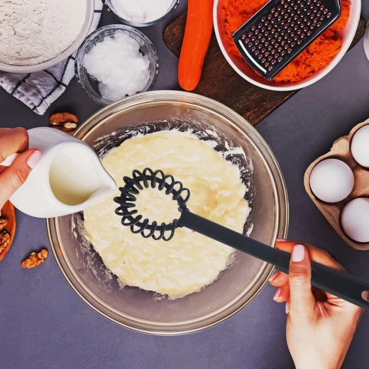De spiraal bereikt gemakkelijk de hoeken van kommen en pannen en helpt sauzen en deeg snel glad te roeren zonder klontjes.