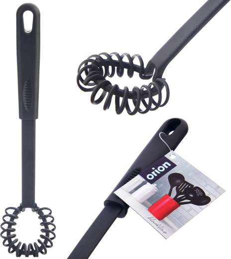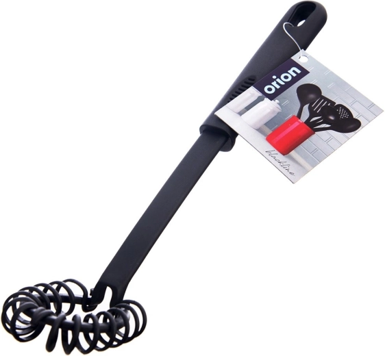 Lichte en duurzame spiraalklopper van thermoplast in elegante zwarte kleur, een geweldige hulp voor snel en efficiënt mengen van ingrediënten. De spiraalkop bereikt moeiteloos de hoeken van potten en pannen, zodat sauzen en deeg mooi glad worden zonder klontjes.