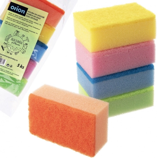 Set van 5 keukensponzen met dubbelzijdige uitvoering voor effectief reinigen van vaat en oppervlakken zonder krassen. Hoge absorptie bespaart afwasmiddel, duurzame polyurethaanschuim en schurende polyesterlaag zorgen voor een lange levensduur. Elk sponje heeft een andere kleur voor eenvoudige differentiatie in het huishouden.