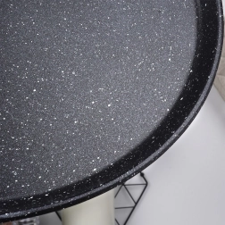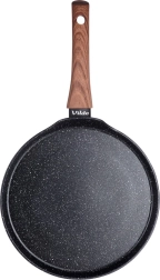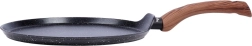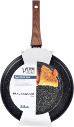 De platte crêpepan uit de BLACK&WOOD-lijn combineert een moderne look met functioneel design. De granieten antiaanbaklaag minimaliseert aanbranden en maakt bakken met minder olie mogelijk. De lage rand en de praktische schenksnede vergemakkelijken het gieten van beslag, optillen en omdraaien van pannenkoeken.