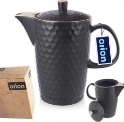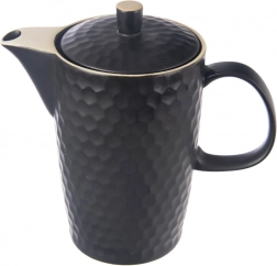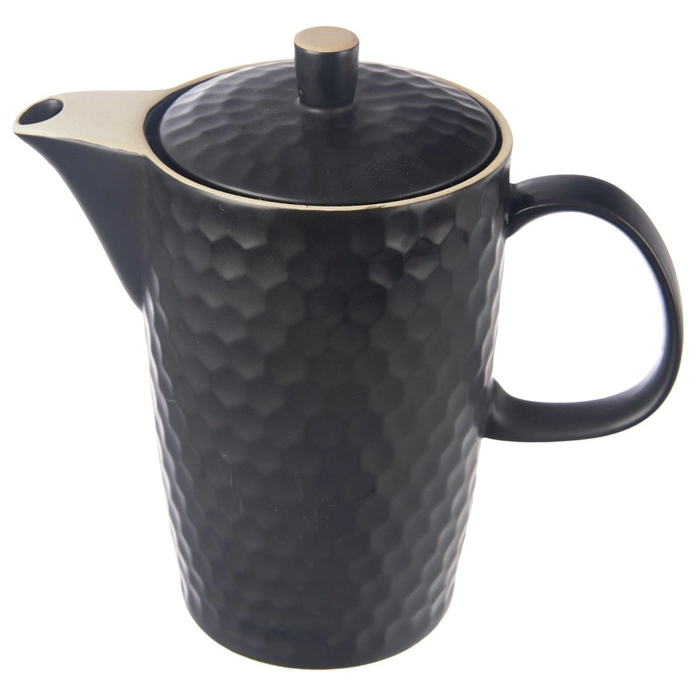 Ontdek de praktische en designgerichte TEA TIME-theepot van duurzaam aardewerk in matzwart. Het getextureerde oppervlak, geïnspireerd op honingraten, geeft uw tafel een moderne uitstraling, terwijl het deksel met greep dranken langer warm houdt en beschermt tegen vuil.