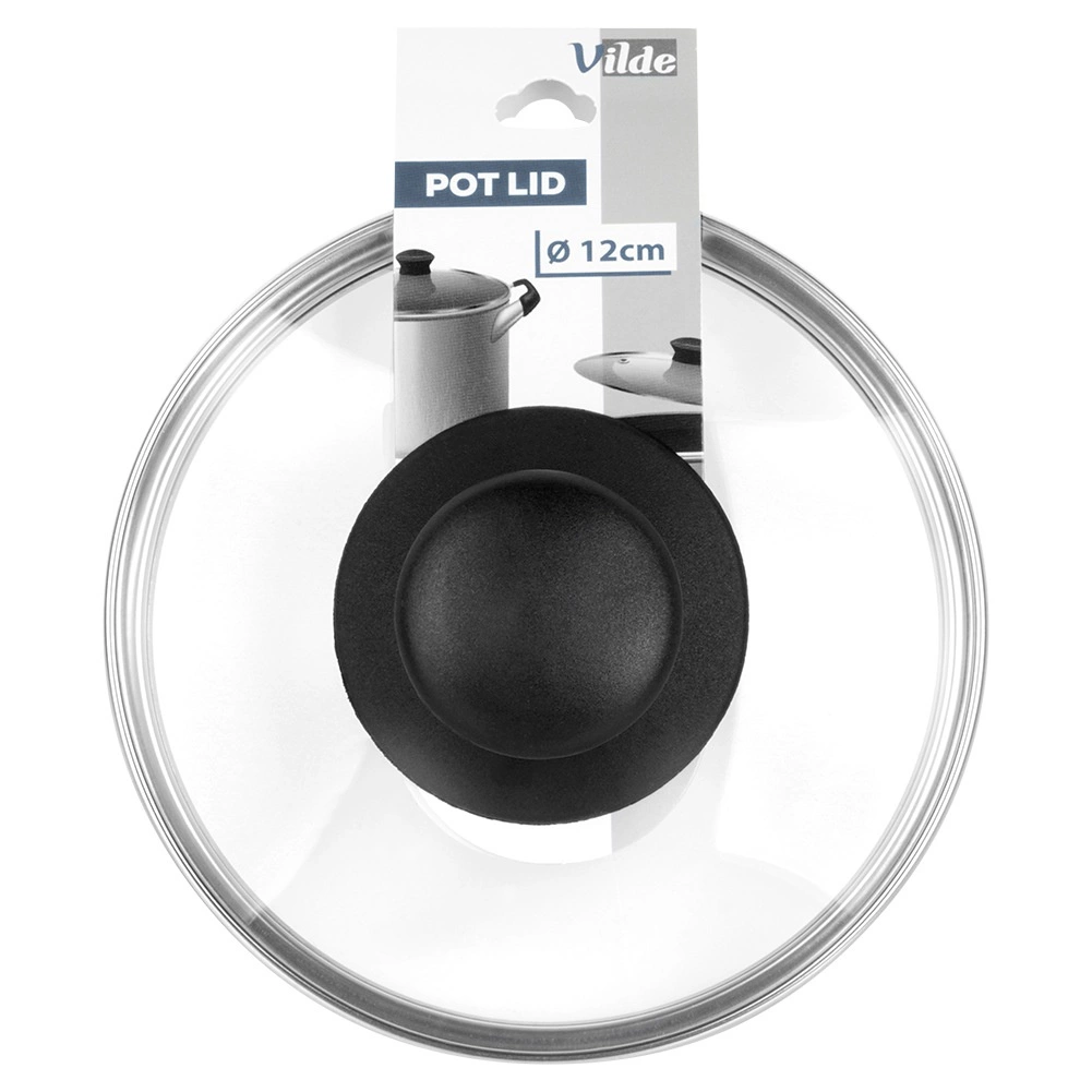 Dit universele glazen deksel past precies op potten, pannen en steelpannen met een diameter van 12 cm. Het transparante, hittebestendige glas met roestvrijstalen rand garandeert duurzaamheid en eenvoudig onderhoud, terwijl de ergonomische knop een veilige greep biedt. Door de licht bolle vorm wordt de circulatie van hete lucht bevorderd.