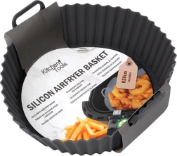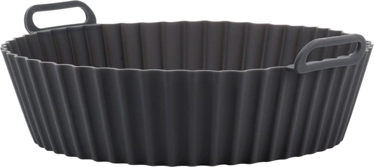 Met deze grijze siliconen mand houd je je heteluchtfriteuse moeiteloos schoon. Plaats de inzet simpelweg in de friteusemand, bereid friet, kip of groenten en neem hem na het garen uit met de praktische grepen. Het antiaanbak oppervlak vergemakkelijkt zowel serveren als afwassen en voorkomt aanbranden.