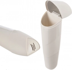 De goed sluitende klep en ventilatieopeningen beschermen de inhoud tegen stof en vocht en laten na gebruik van de tandenborstel toch ventileren.