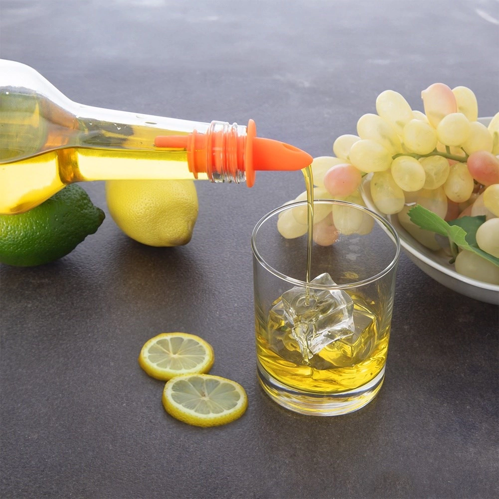 Maak het serveren van dranken en smaakmakers gemakkelijker met schenktuiten die een vloeiende, gecontroleerde stroming zonder spatten en verspilling garanderen. De flexibele ribbels zitten veilig in de hals en houden de fles schoon en droog.